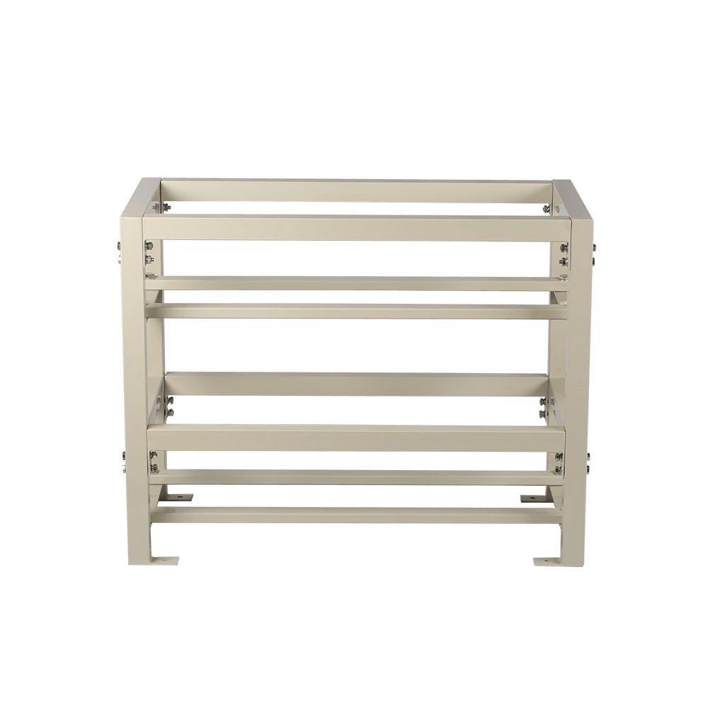 Стеллаж под аккумуляторы 8x100 представляют собой рамочную конструкцию, собираемую из стального профиля прямоугольной формы рассчитанную на восемь аккумуляторов емкостью не более 100Ач. Все составные части заводского изготовления. Конструкция рамы имеет кислото- и огнестойкое покрытие. Комплект включает в себя все необходимые детали для крепления, которые по своим размерам точно совпадают с заранее подготовленными отверстиями в рамах, продольных и соединительных балках для обеспечения устойчивости конструкции.