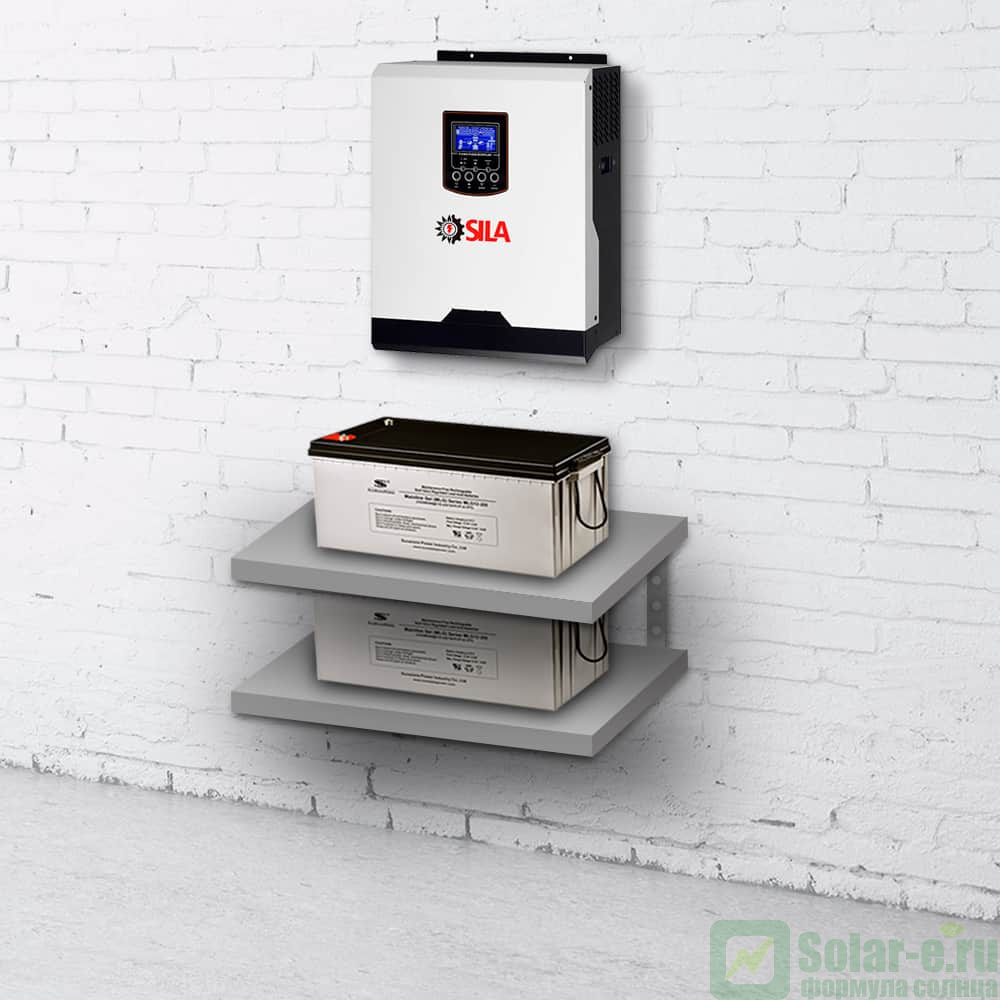 ИБП для дома SILA V-1000P ( 4,8 кВт*ч ) состоит из инвертора/зарядного устройства SILA V 1000P мощностью 1 кВт ( кратковременно 2 кВт ) и двух внешних аккумуляторов 200Ач.