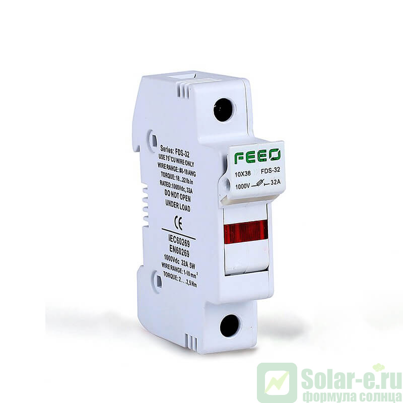 Держатель предохранителя FDS-32B для предохранителей FDS-32 применяется для защиты оборудования от перегрузок и короткого замыкания в цепях постоянного тока с напряжением до 1000В.