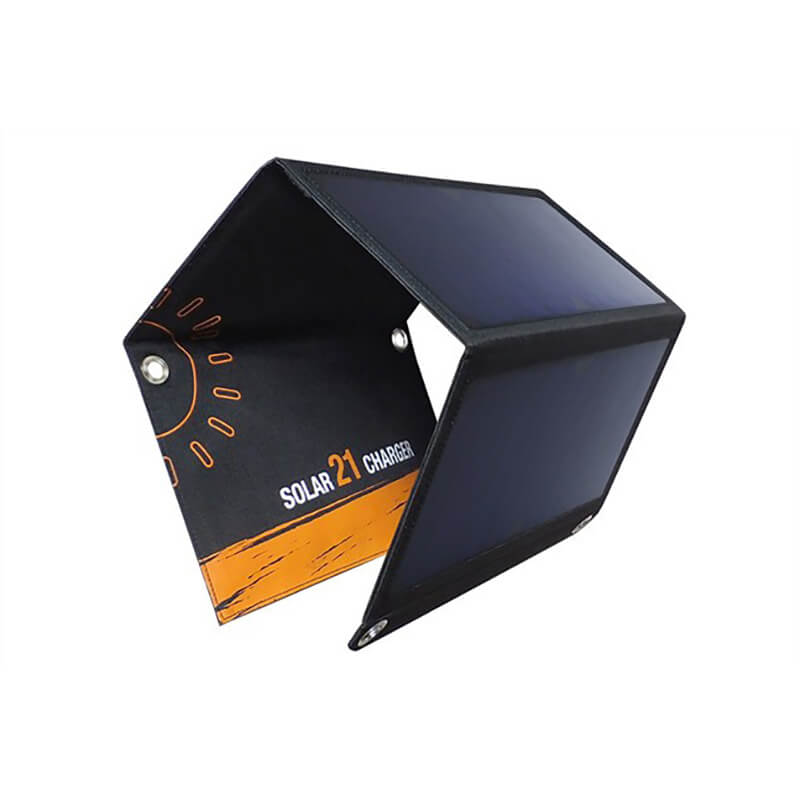 Положить солнечную панель в раскрытом виде под прямые солнечные лучи (загорится синий индикатор), с подключенным к нему устройством, подождать полного заряда устройства, закрыть солнечную батарею, отключить заряженное устройство.